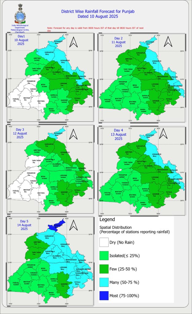 ਅੱਜ ਪੰਜਾਬ ਵਿੱਚ ਮੀਂਹ ਦੀ ਚੇਤਾਵਨੀ। 14 ਅਗਸਤ ਤੱਕ ਮੌਸਮ ਕਿਹੋ ਜਿਹਾ ਰਹੇਗਾ? ਪੰਜਾਬ ਮੌਸਮ ਅਪਡੇਟ